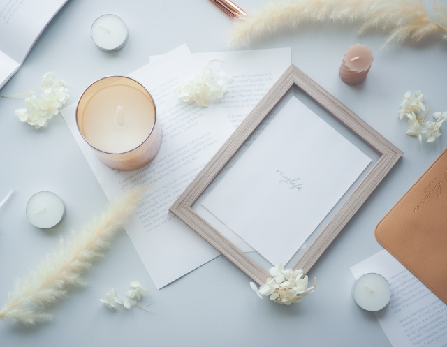 写真やポストカード、押し花など、挟むものを簡単に交換できるので、気分や季節に応じて自由にディスプレイを楽しめます。