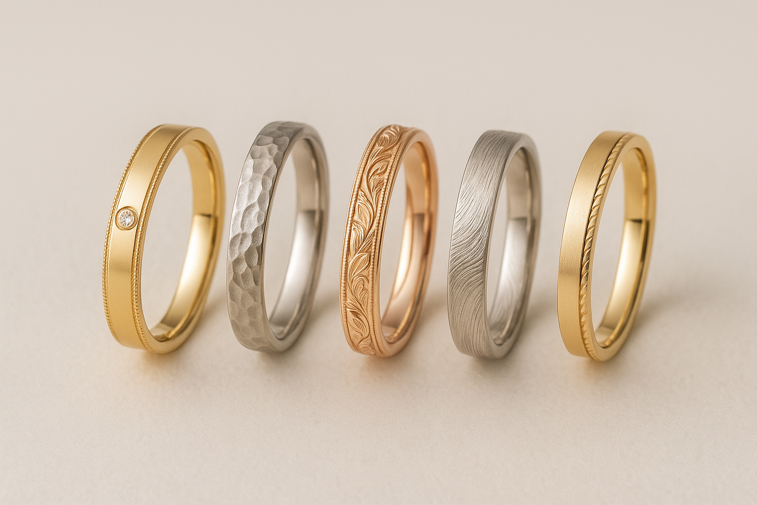 特に、平打ちリングに細いラインを一本入れたデザインや、つや消しとミラー仕上げを組み合わせたコントラストデザインが注目を集めています。