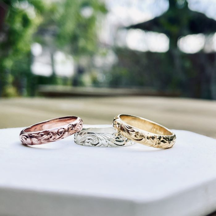 それぞれの仕上げが、異なる表情の指輪を生み出します。