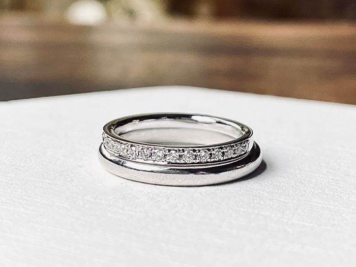 表面部分のみにダイヤモンドを留めた「ハーフエタニティ」の2種類があります。