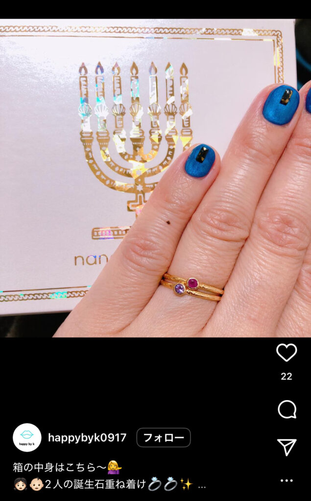 特に10代後半から20代の若い女性を中心に、「推し」の誕生月の石をあしらったバースデーリングを購入し、SNSでそれを共有することで同じファン同士のコミュニティ意識を高める現象が見られます。