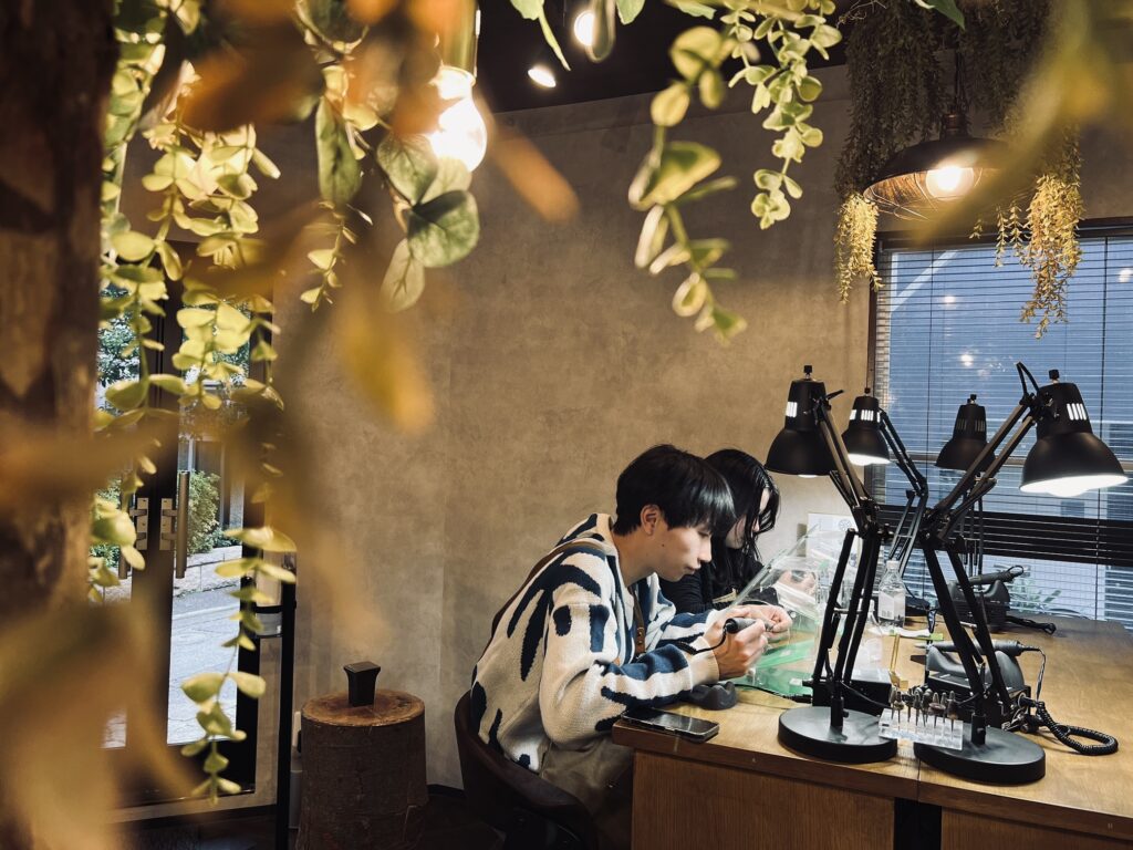 icci 代官山では、カップルで一緒に記念指輪を作る体験ができます。経験豊富なスタッフのサポートのもと、金属の選択からデザイン、仕上げまで、全ての工程に携わることができる特別なプログラムを提供しています。