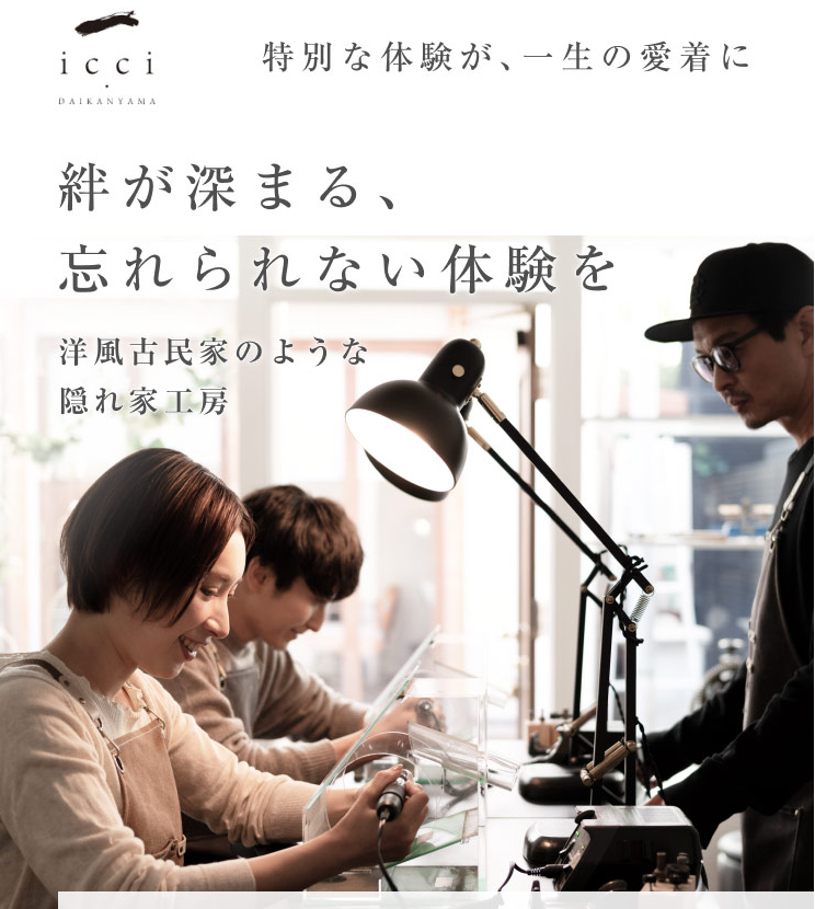 Debut icci 代官山は渋谷区代官山町に店舗を構える手作り指輪工房で、ペアリングをイチからデザインでき、制作工程にも携われます。