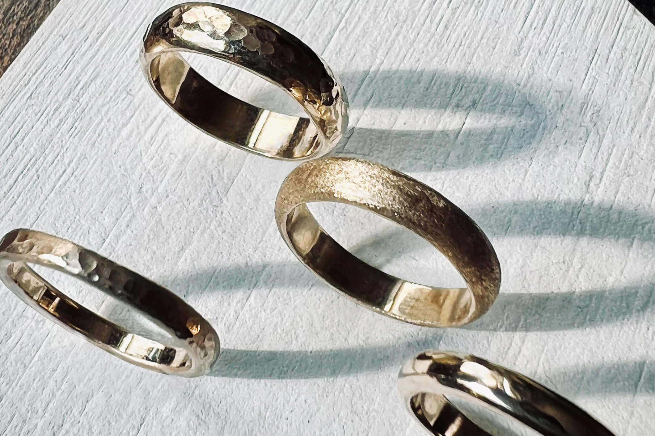 手作り体験では、リング幅・形状・デザイン(ハンマー仕上げ)を選べます。刻印の無料サービスも行っており、リーズナブルかつ手軽に指輪の手作り体験をしたい方におすすめです。