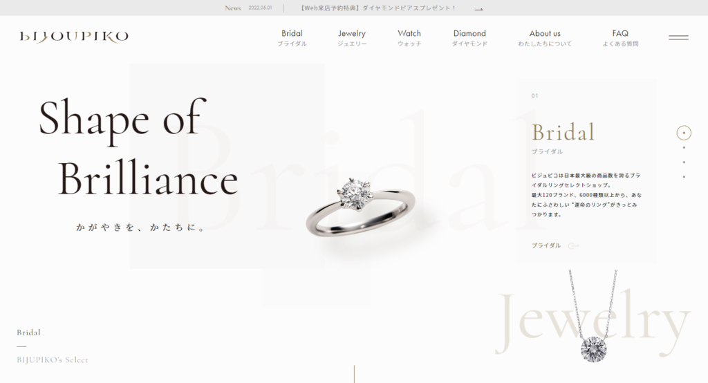 銀座に店舗を構えているセレクトショップです。取り扱っている指輪は300種類を超え、1カラットを超えるダイヤモンドの指輪も100点以上取り扱っています。