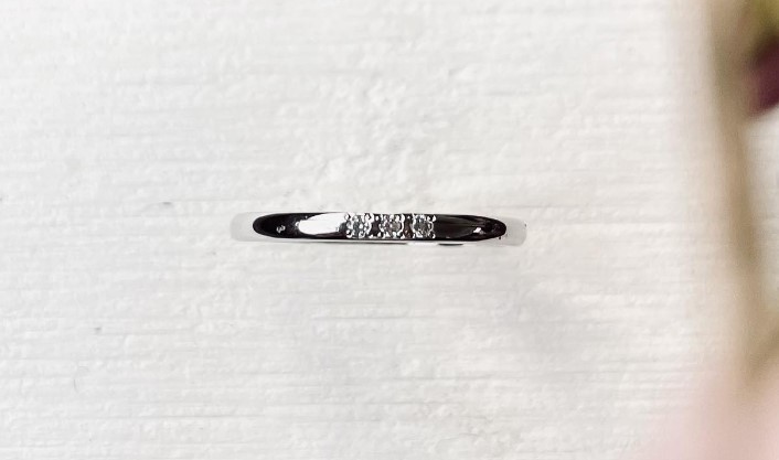 3つのダイヤモンドがさりげなく輝く、鏡面仕上げの結婚指輪です。