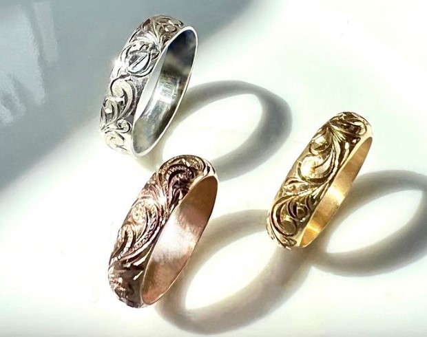 ハワイの自然のモチーフが描かれている、ハワイアンデザインの結婚指輪です。