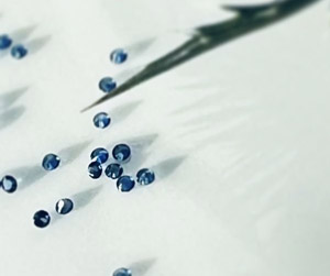 サファイアはコランダムと呼ばれる鉱物の結晶からなり、赤色を放つものをルビー、それ以外がサファイアと呼ばれています。色が濃く透明度の高いブルーサファイアは、それだけで宇宙のようです。