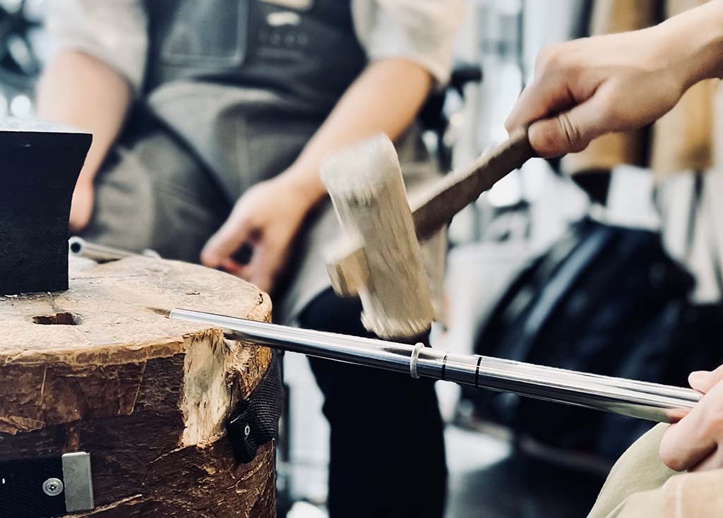 リングは完成直前の状態まで職人が仕上げてから、自分達でハンマーを使い、指輪の表面を叩いて模様付けするため、初めての方でも簡単に指輪の作成体験ができます。