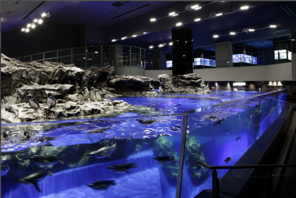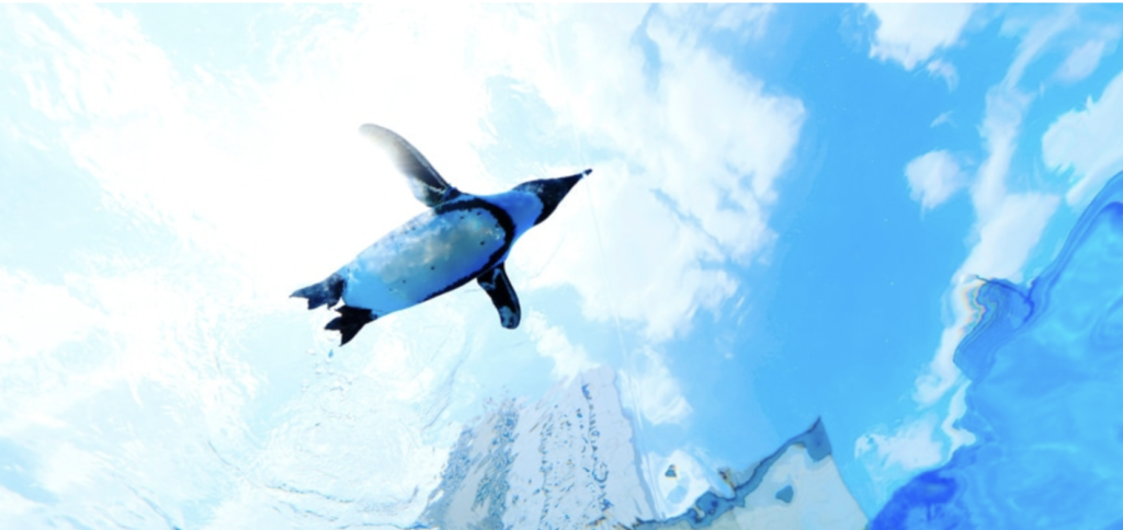 その最大の見どころは、空中を飛ぶように泳ぐペンギンが観察できる「天空のペンギン」です。