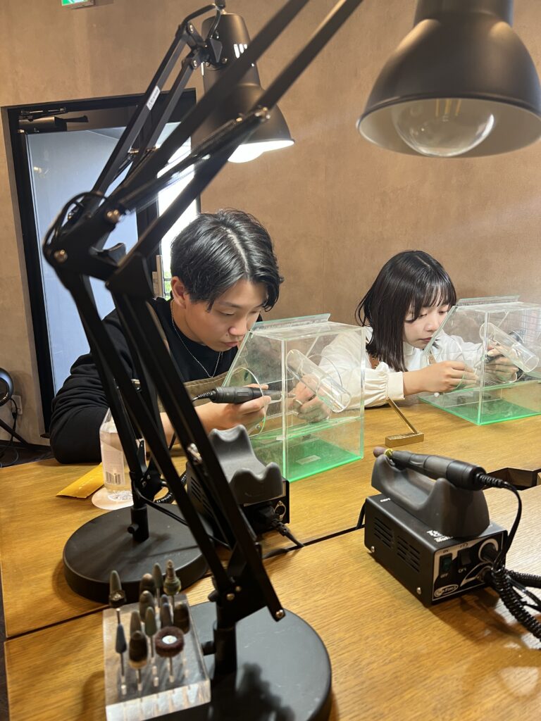 この手作りペアリング工房は、単なるアクセサリーショップではなく、二人の物語を形にできる特別な場所です。プロの指導のもと、金属を削り、磨き、形を整える過程は、まるで二人の関係づくりのようなもの。共に創り上げる時間と完成した作品は、かけがえのない思い出となります。