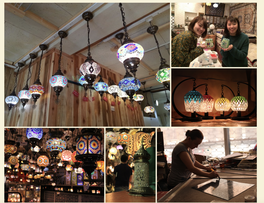 トルコの伝統工芸を学んだスタッフの指導のもと、色とりどりのガラスやビーズを選びながら自分だけのランプを制作する過程は、まるで異国の文化に触れる旅のよう。