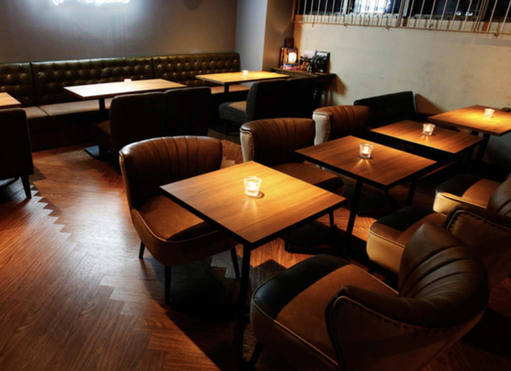 インダストリアルなインテリアデザインと落ち着いた照明が、都会的な雰囲気を作り出しています。