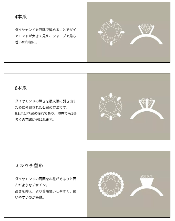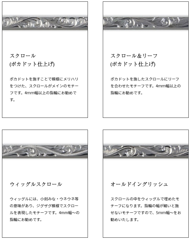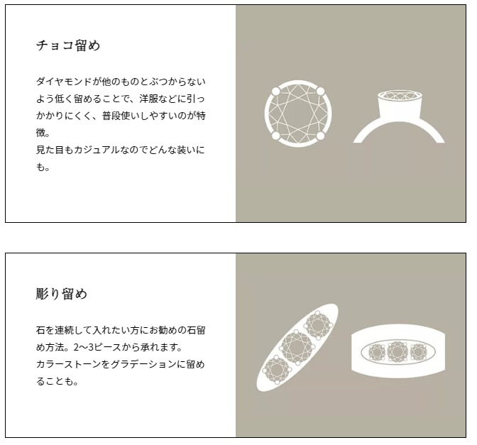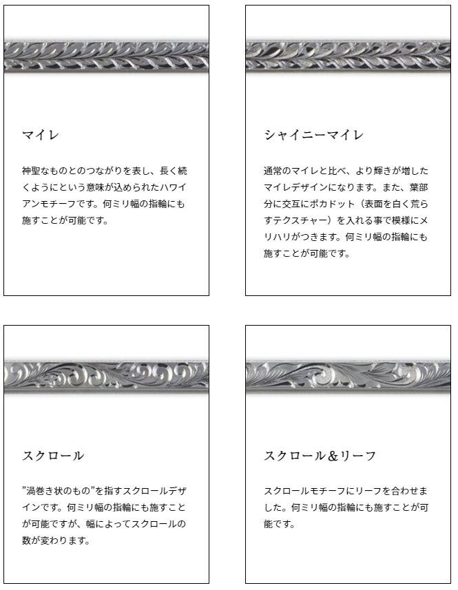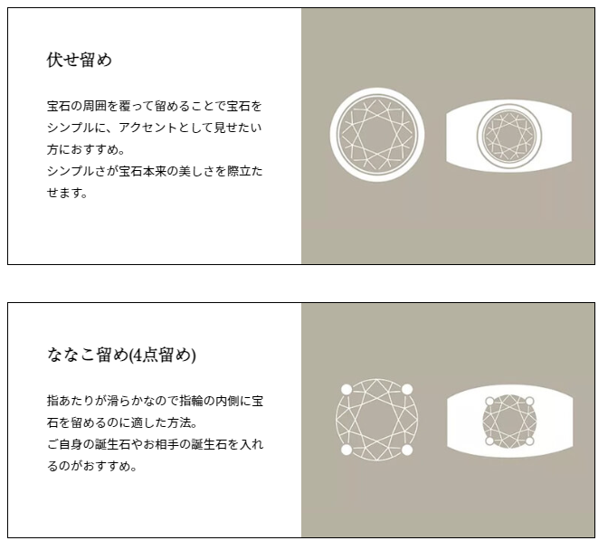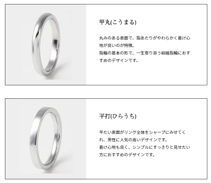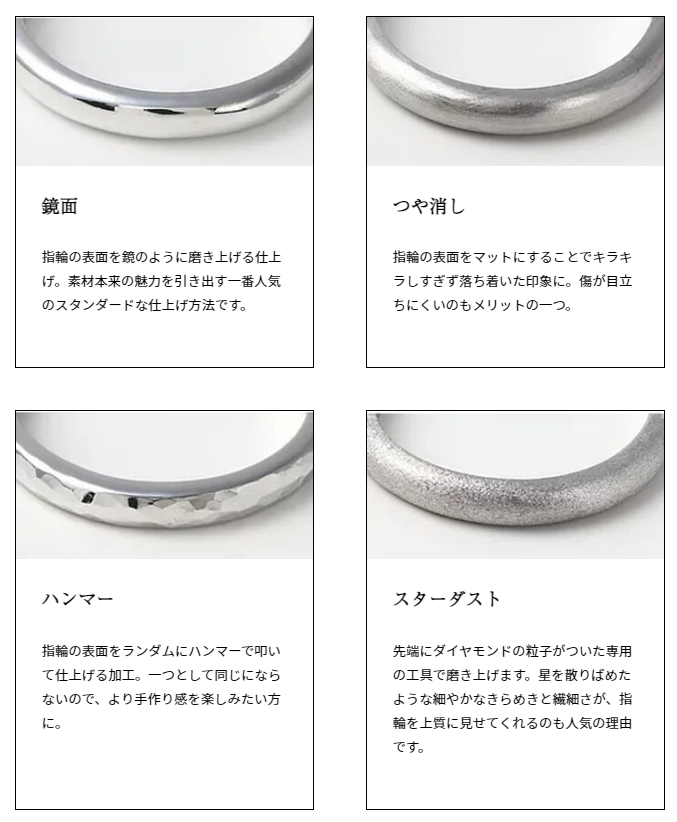 指輪の仕上げ方法は、以下の4種類からお選びいただけます。