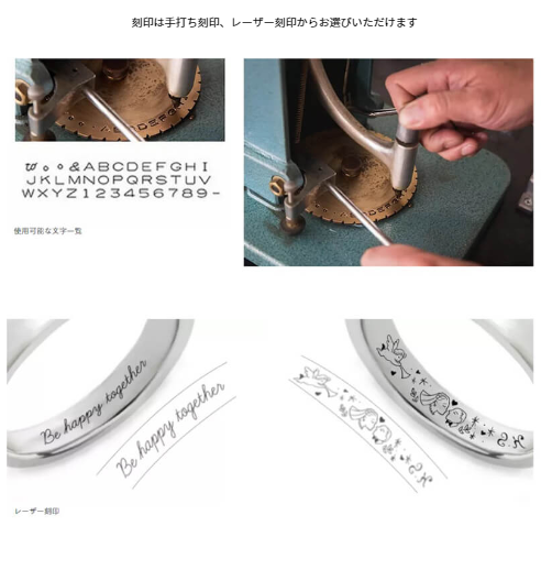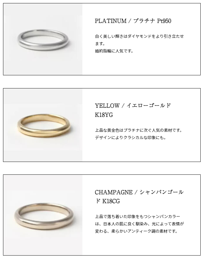 お選びいただける素材等は、通常の手作り結婚指輪と共通です。