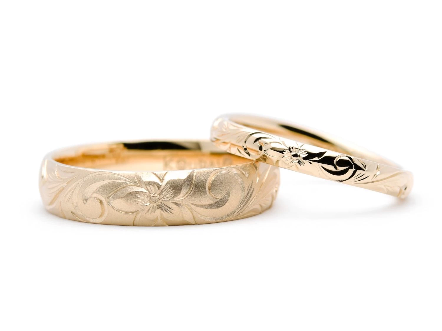 k18のオシャレでシンプルなシャンパンゴールドのペアリングです。