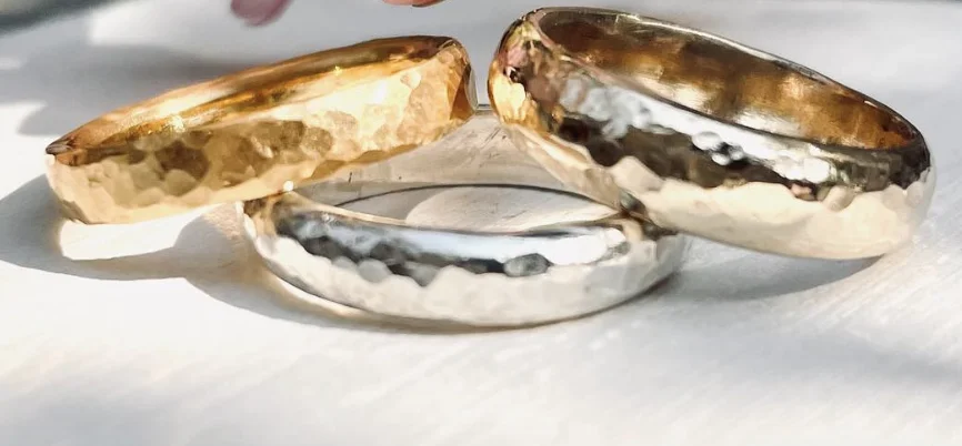 指輪の表面を少しずつハンマーで叩いてデザインしますので、唯一無二の指輪が作れます。