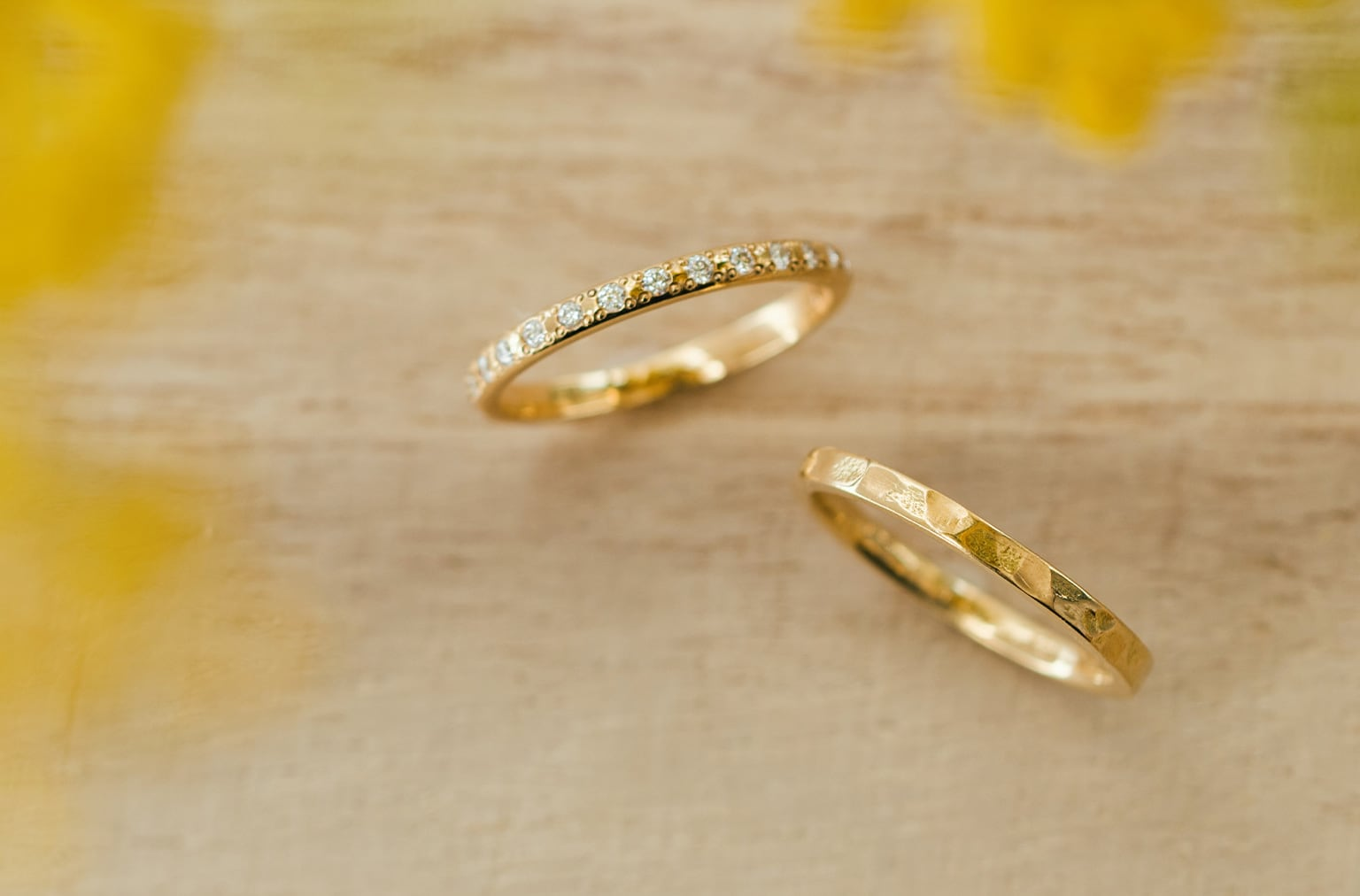 お2人の好みが分かれてしまう場合は、デザインも違う指輪にしてみるのもアイデアの一つです。