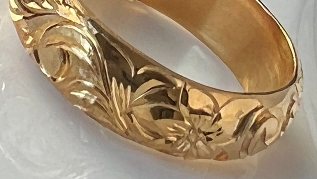 神聖なものとのつながりを表し、長く続くようにという意味が込められたハワイアンモチーフです。何ミリ幅の指輪にも施すことが可能です。