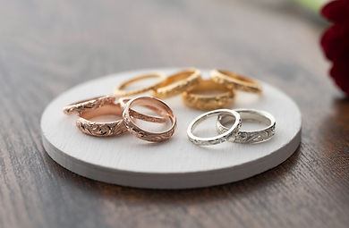 指輪の表面をランダムにハンマーで叩いて仕上げる加工。一つとして同じにならないので、より手作り感を楽しみたい方に。