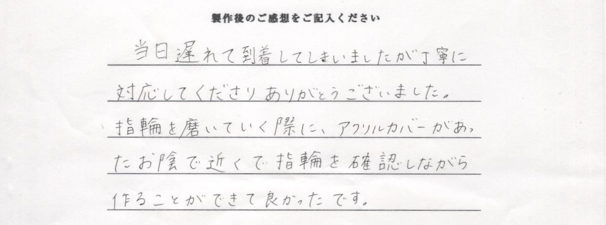 おふたりとも丁寧に取り組んでくださったので、非常にクオリティの高いリングになりました。
