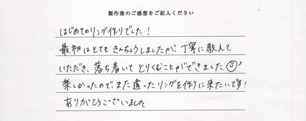 最初はとてもきんちょうしましたが、丁寧に教えていただき、落ち着いてとりくむことができました!