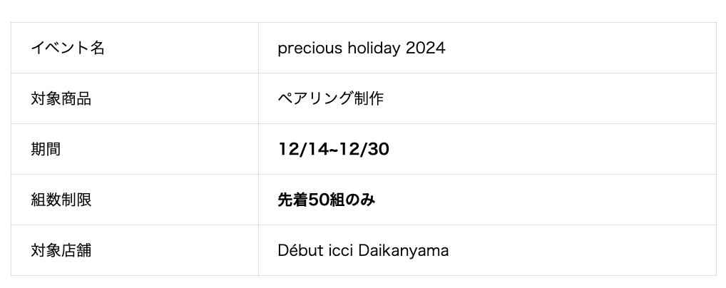 【先着50組限定】precious holiday 2024 12/14~12/30