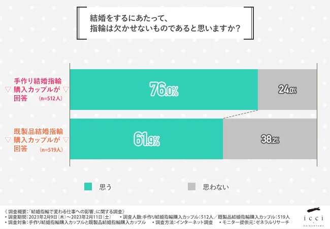 【手作り結婚指輪購入カップル】『思う(76.0%)』『思わない(24.0%)』