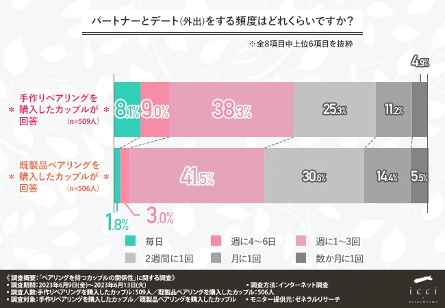 手作りペアリング購入カップルの方が、より頻繁にデートを重ねていることがわかりました。