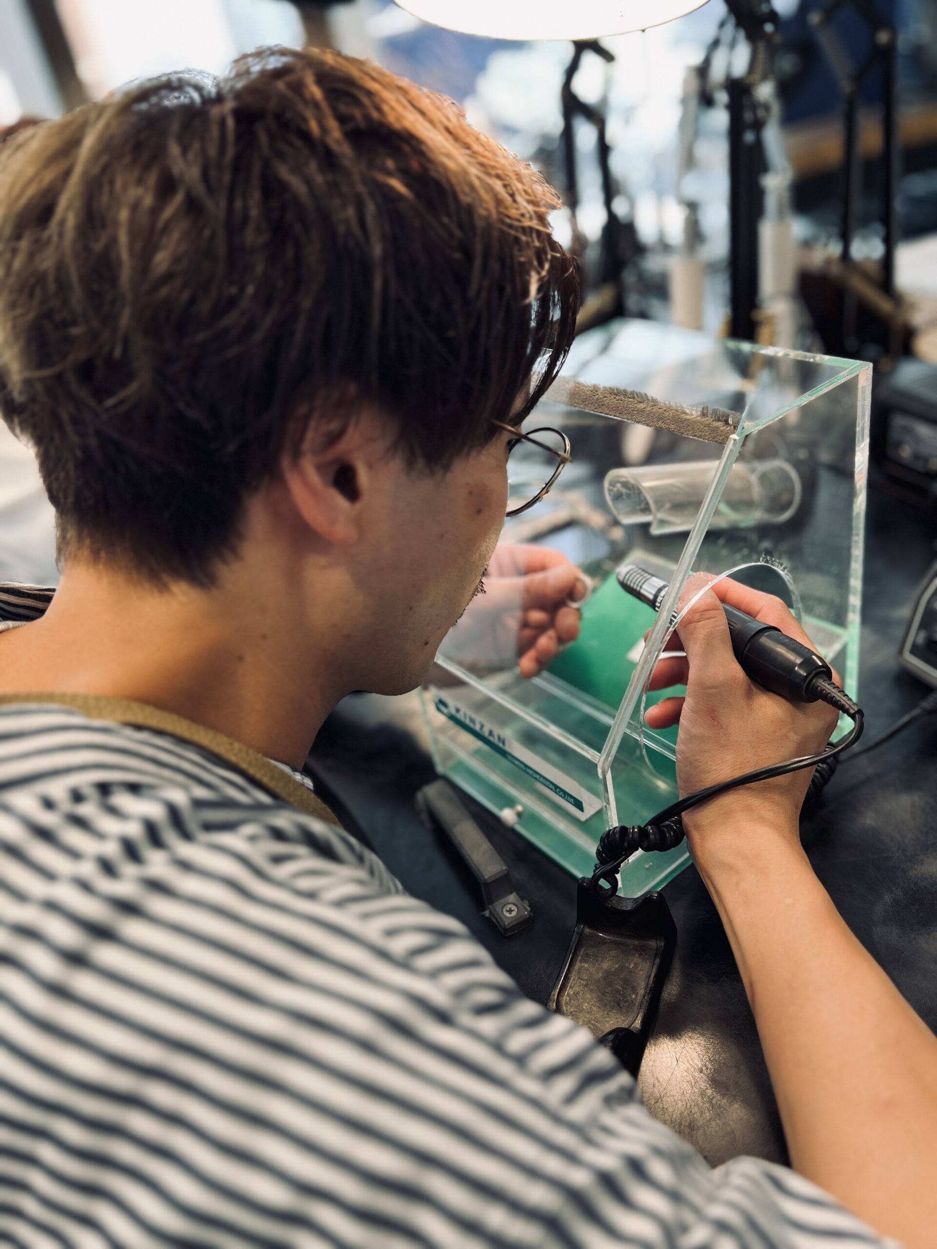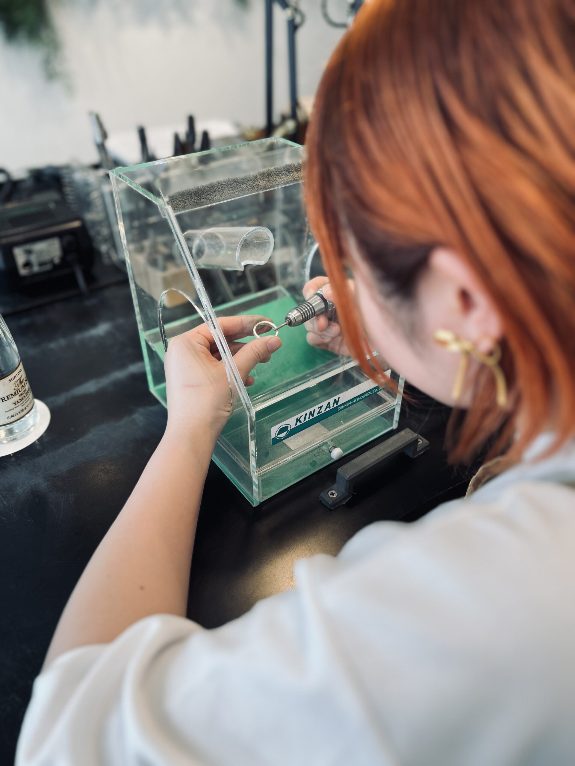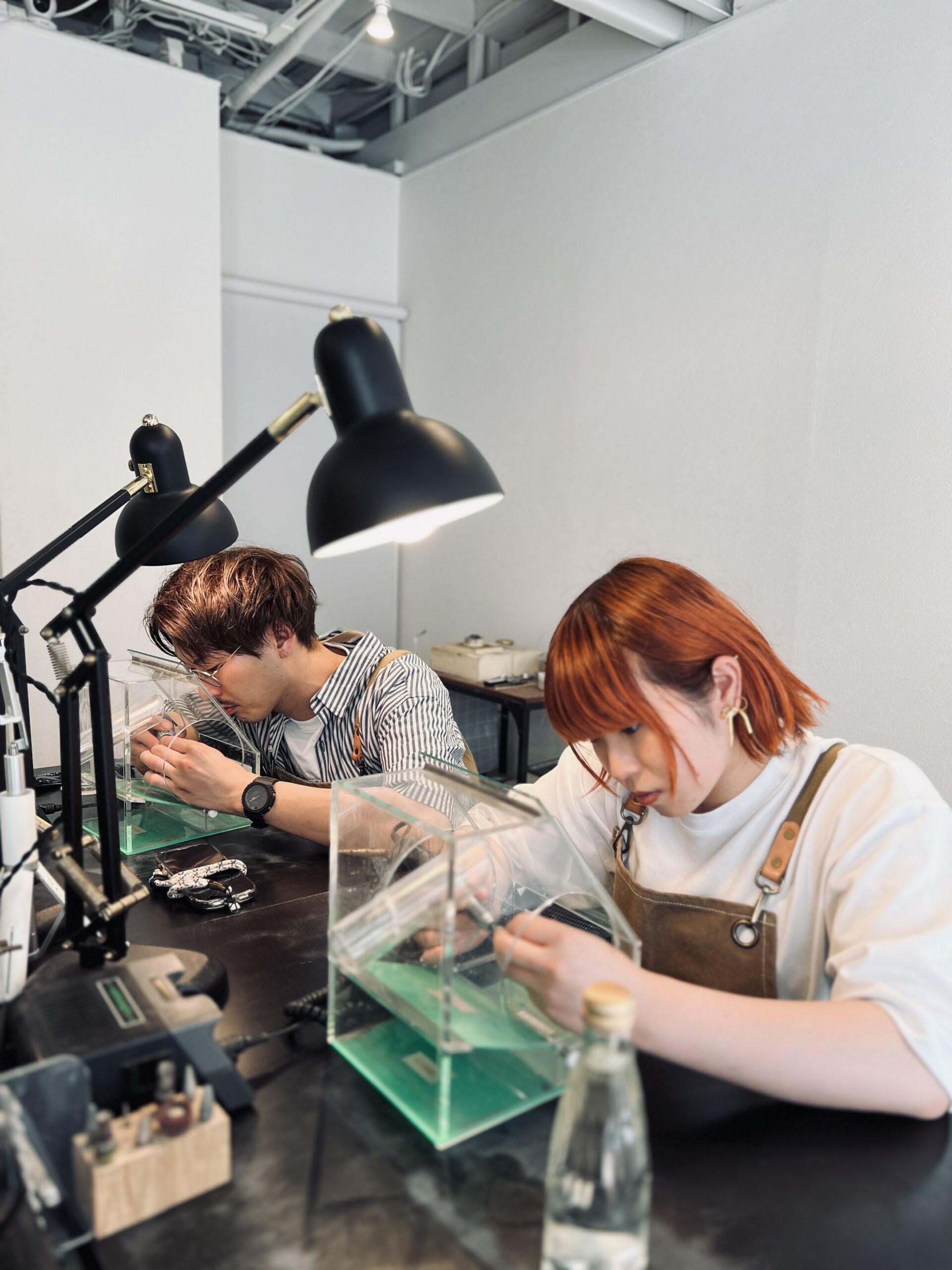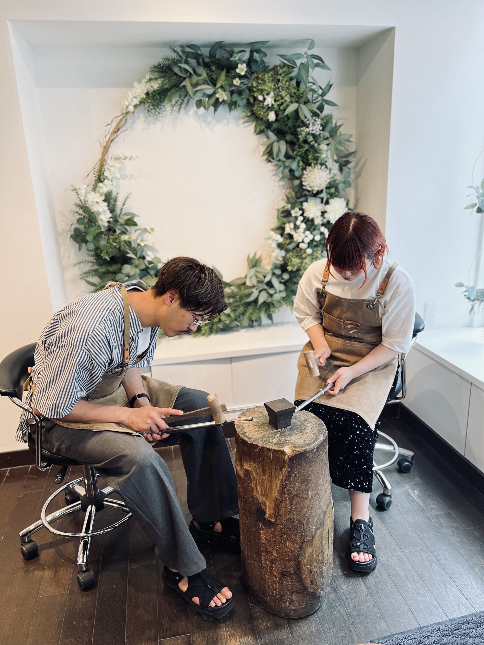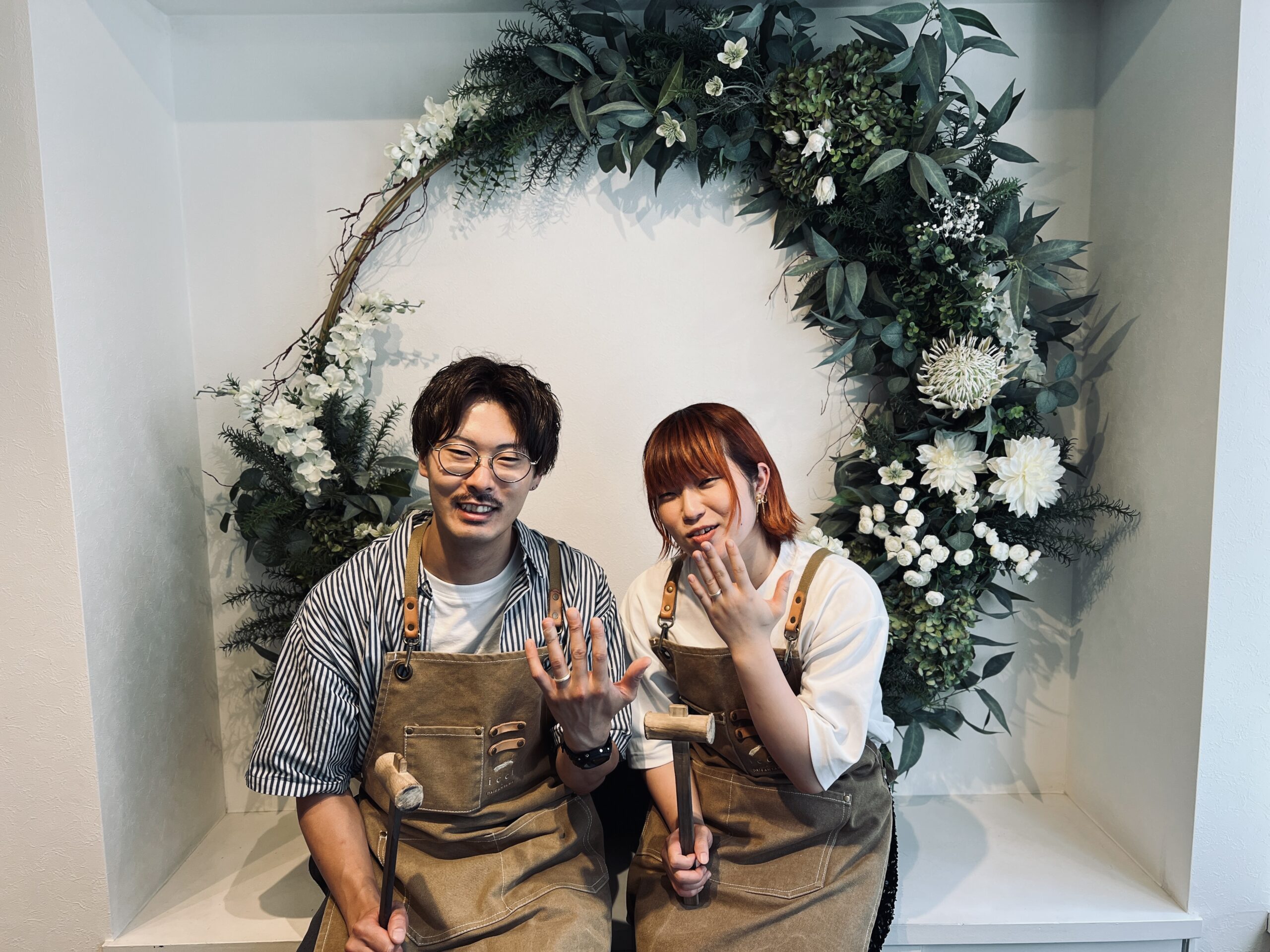 楽しいね、とお二人で言いながら制作されていたのがとても微笑ましく、印象的でした。心から楽しんでくださっているのが伝わり、こちらも嬉しくなりました。おふたりの手作りの指輪が仕上がりましたら、是非ご愛用くださいませ。ご来店誠にありがとうございました!