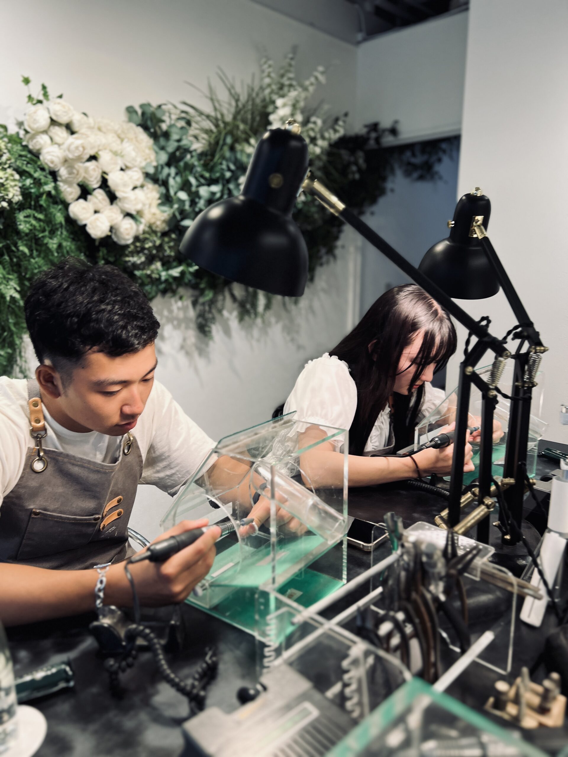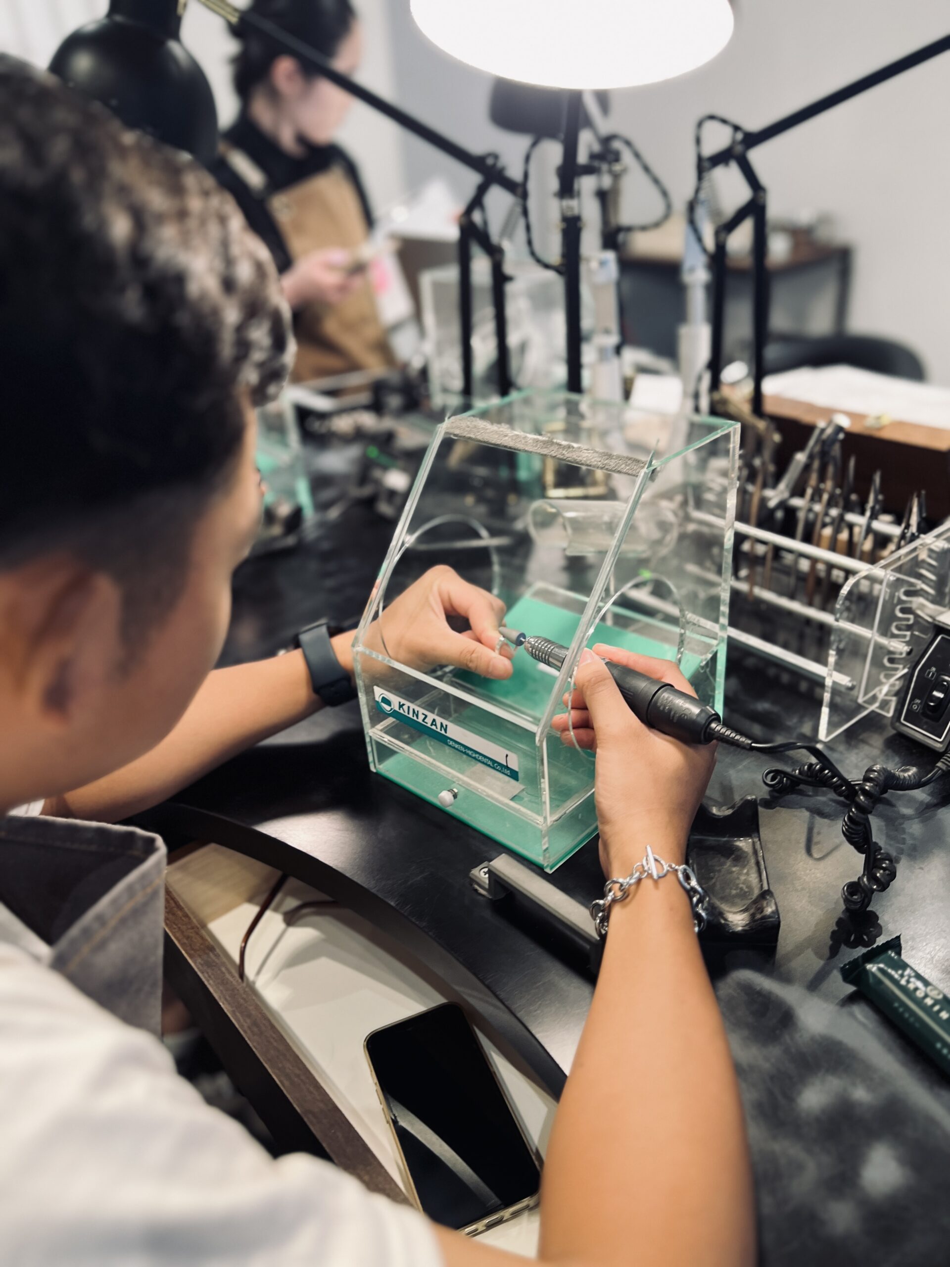 指輪のデザインを悩まれていましたが、最終的に一番お好きな組み合わせを選んでいただきました。磨きは集中して、黙々と作業されていたのが印象的でした。加工の仕上がりを是非楽しみにお待ち下さいませ。ご来店誠にありがとうございました!