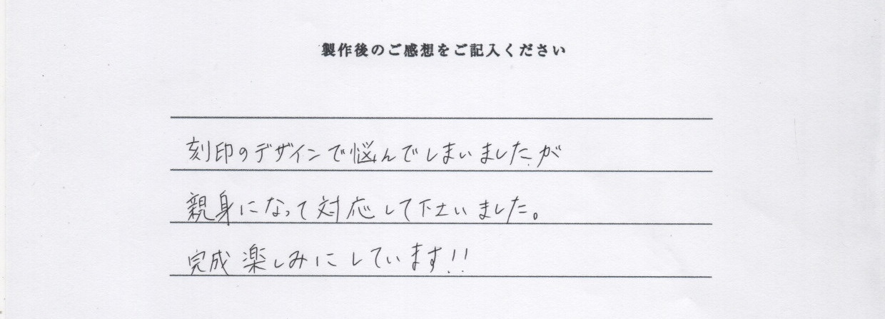 お二人とも刻印をどうするか、またデザイン決め、ご制作、全て楽しそうにしていただいていたので嬉しく思います。
