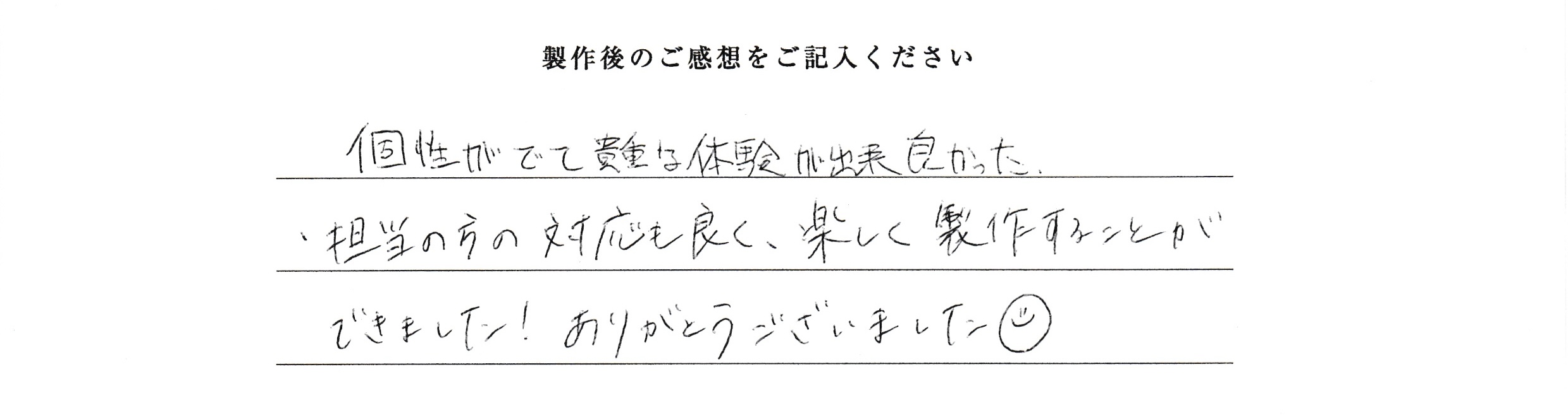 担当の方の対応も良く、楽しく製作することができました!ありがとうございました^^