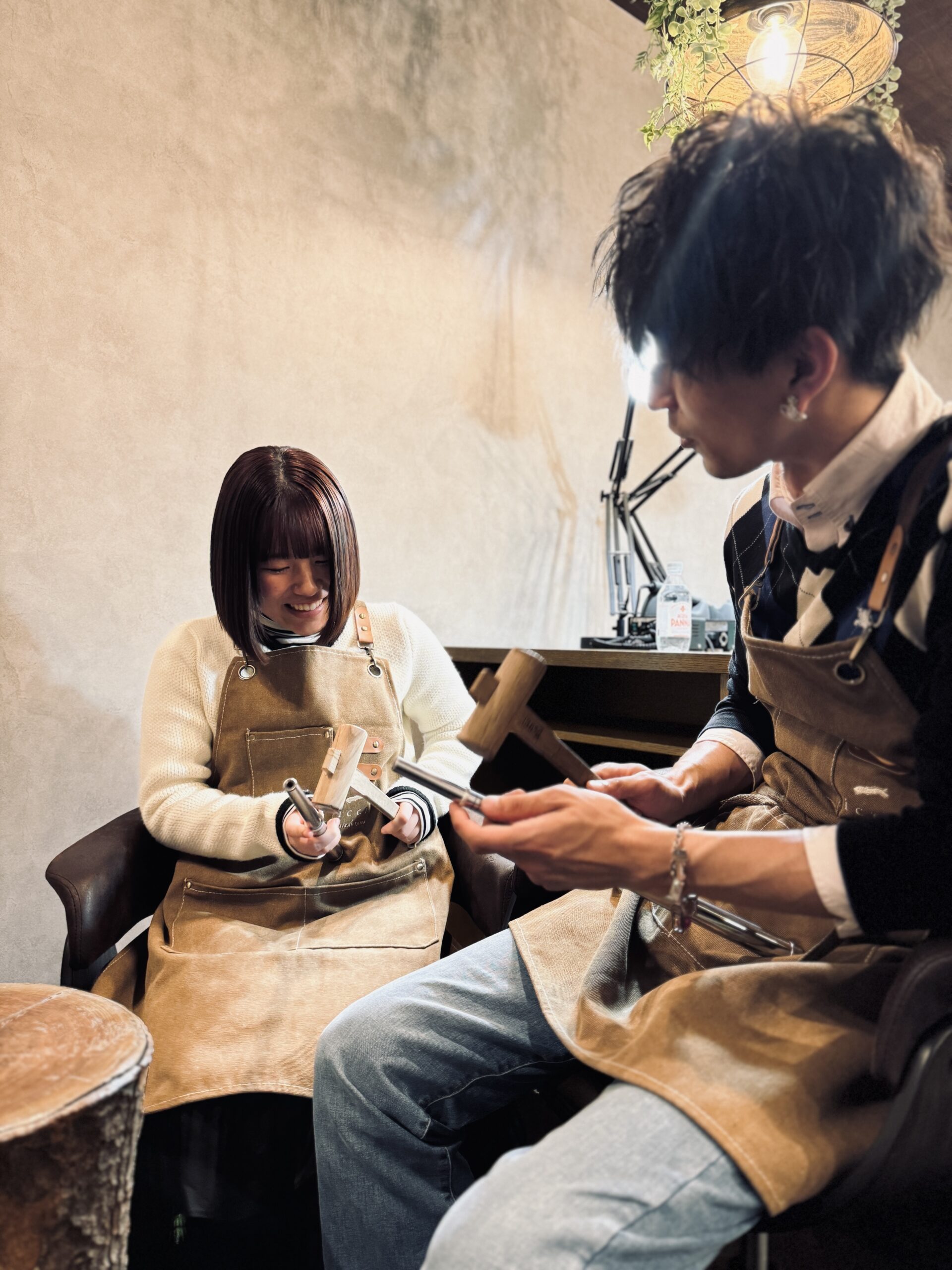 ペアリングを作るのにフォントや石の種類が沢山あって、お互いに相談しながら決めて作れたのがとても楽しかったです。作ってる最中も写真を撮ってくれていて、写真としても思い出に残せることができたので良いペアリング体験になりました!!
