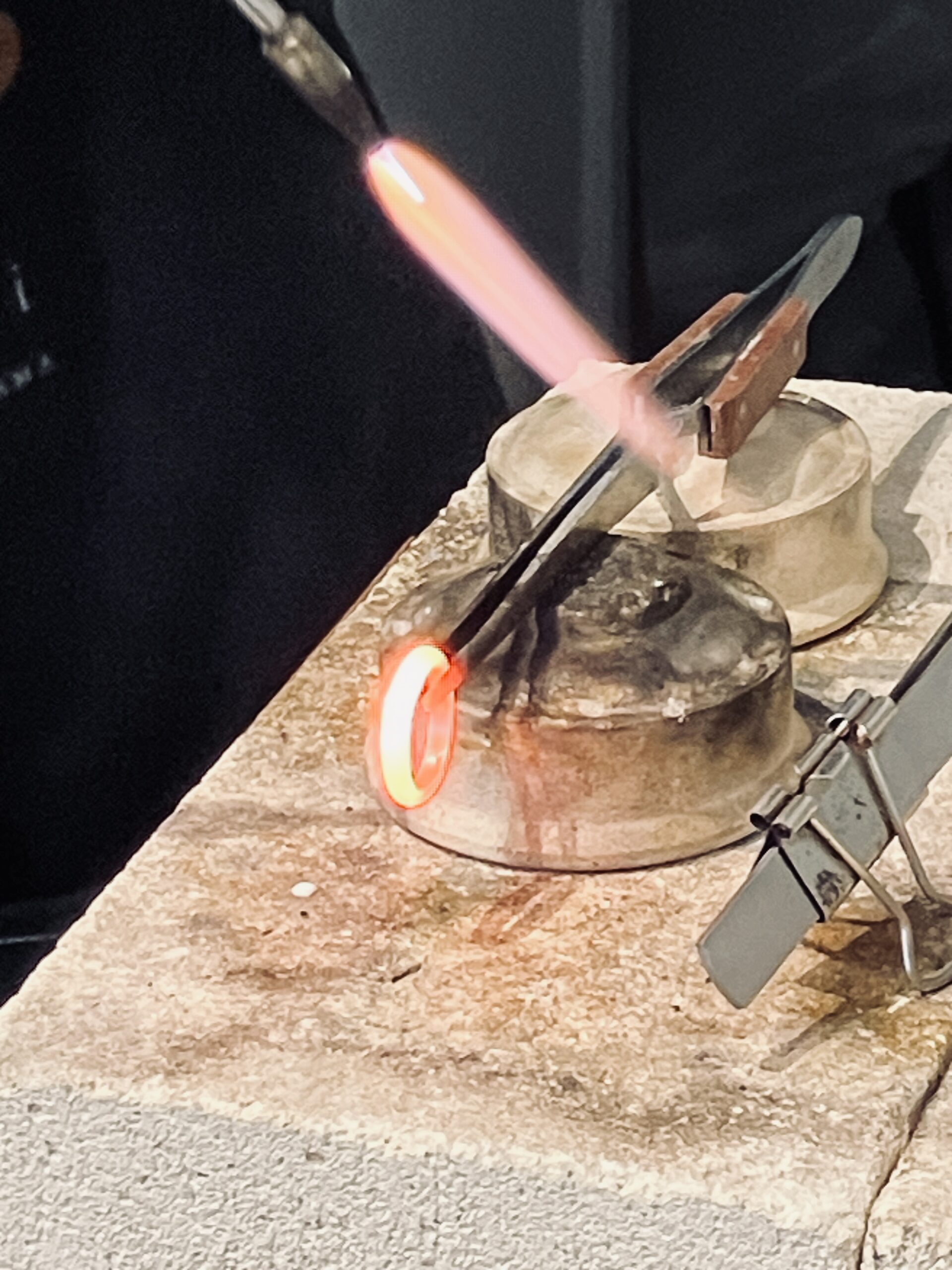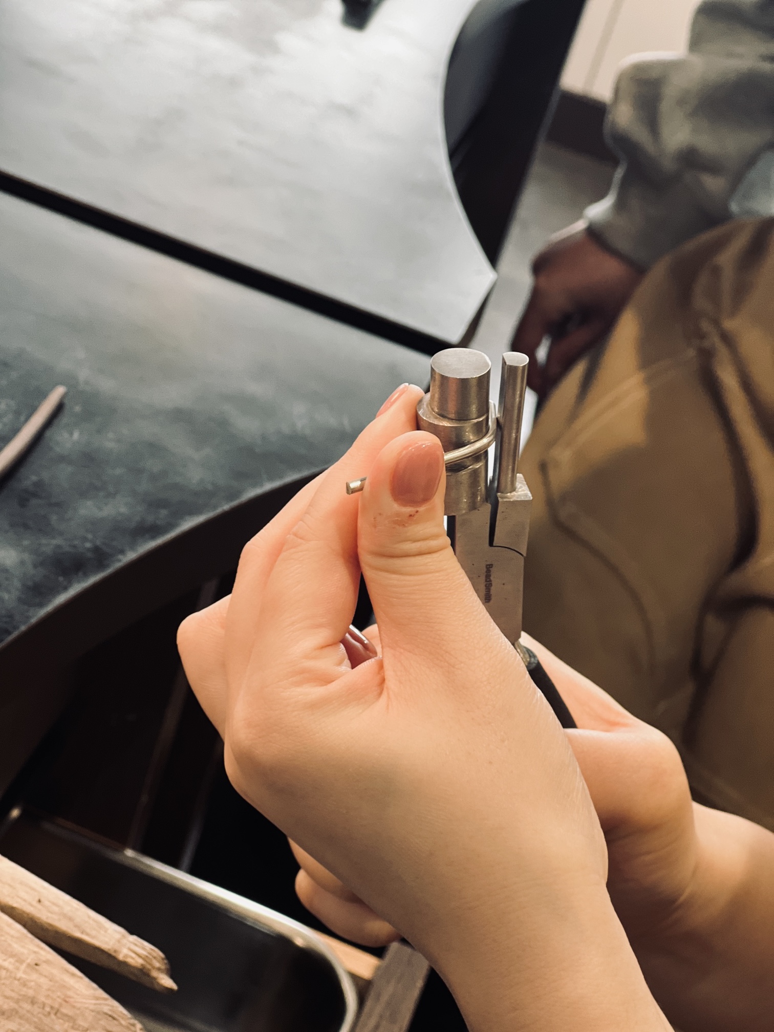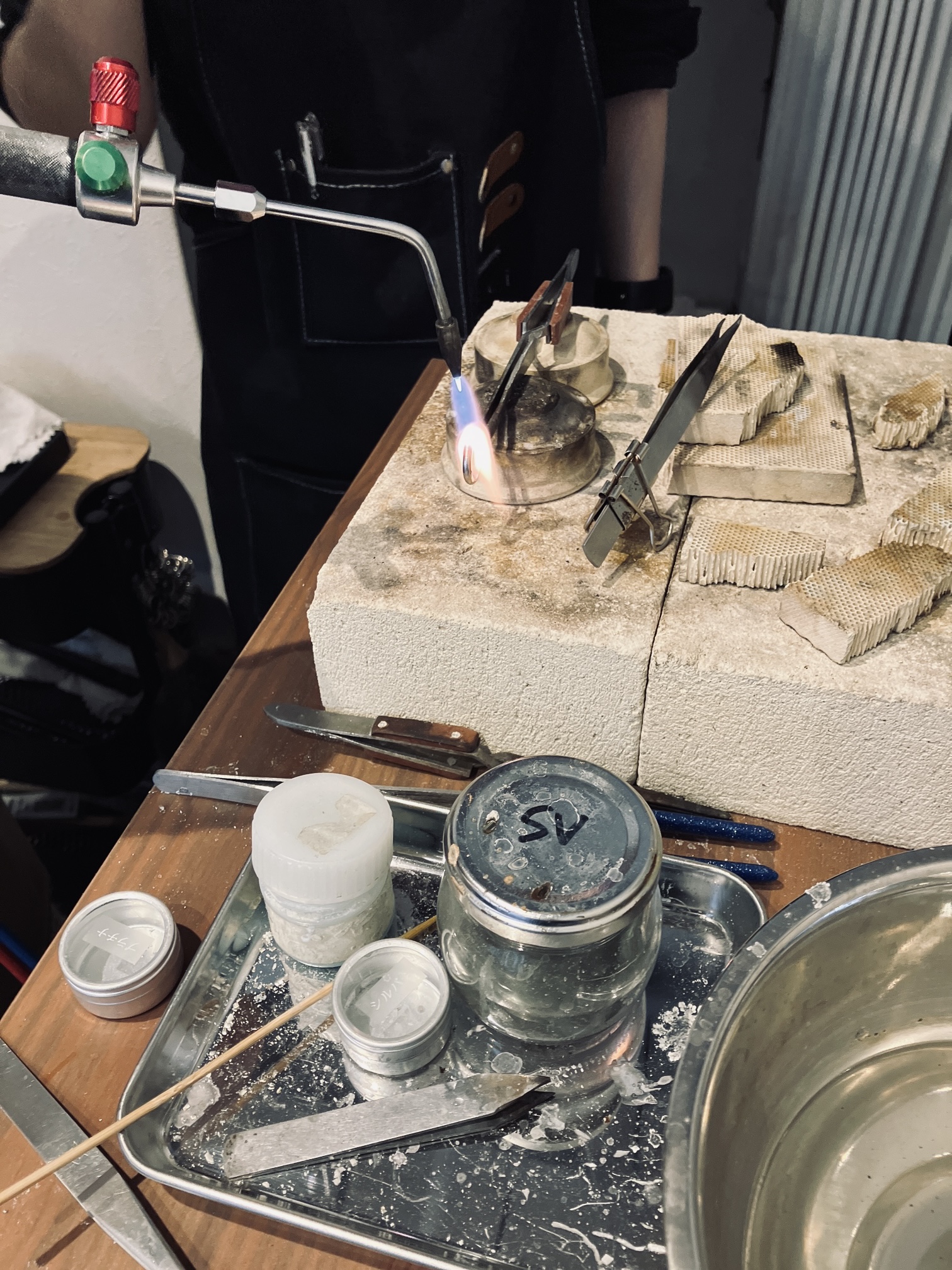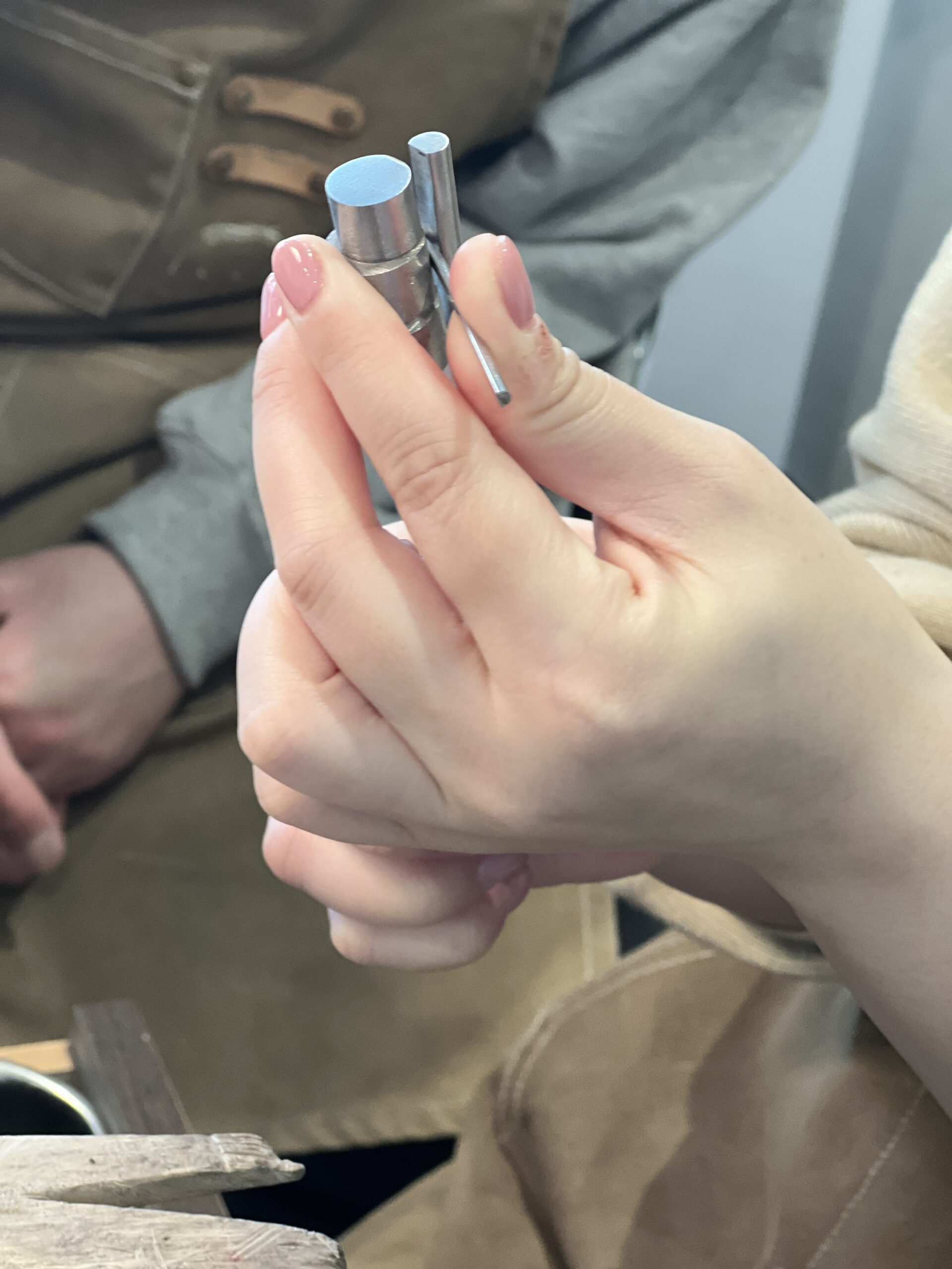 サイズを広げる作業がとても難しかったです。スタッフさんのフォローが優しく安心して作業に取り組めました!どの工程も初めてのことで楽しかったですが、特に最後のみがく工程が出来上がりに近づいているワクワクさを感じられて良かったです!