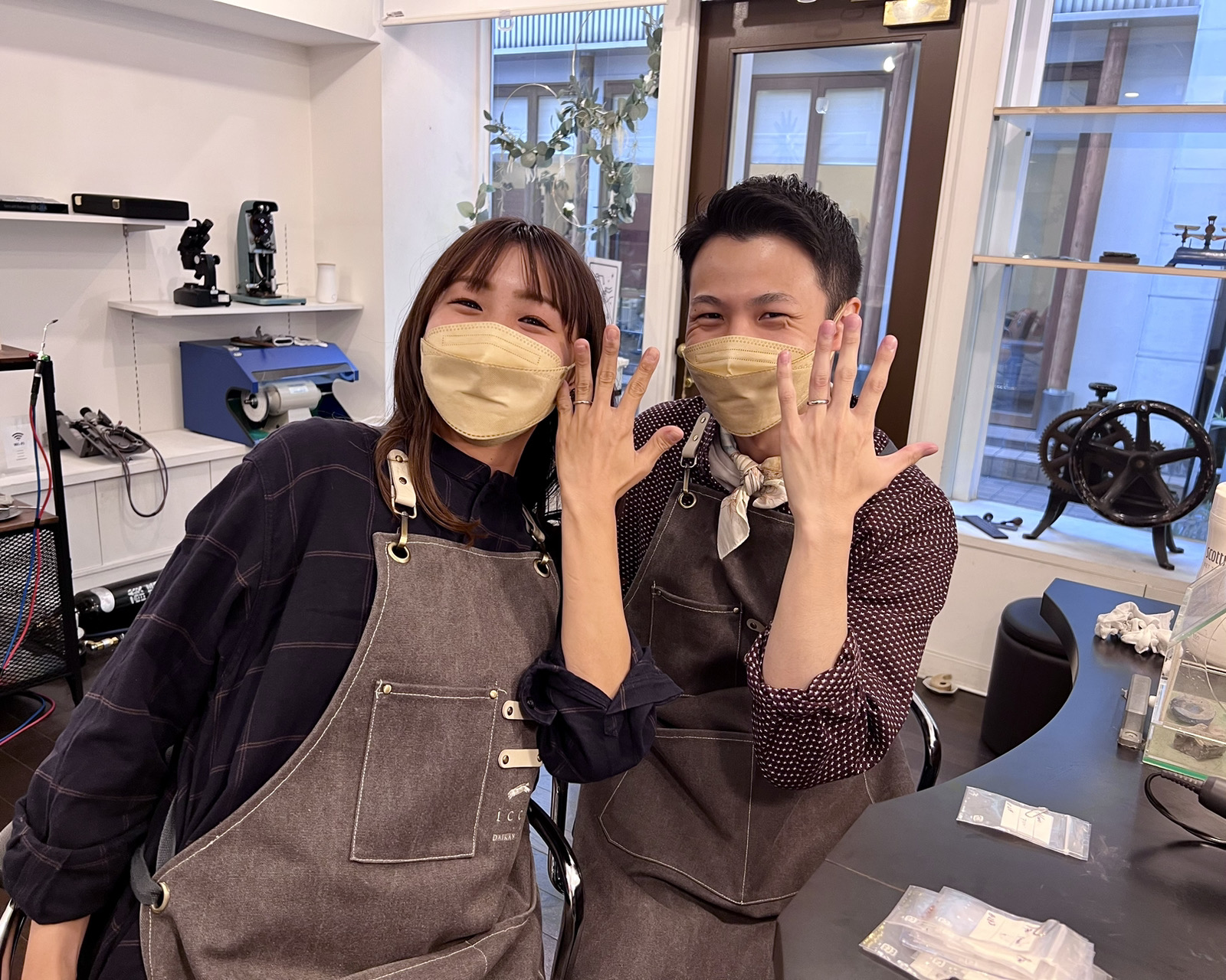 結婚指輪制作にいらしたとても楽しそうなお二人でした。