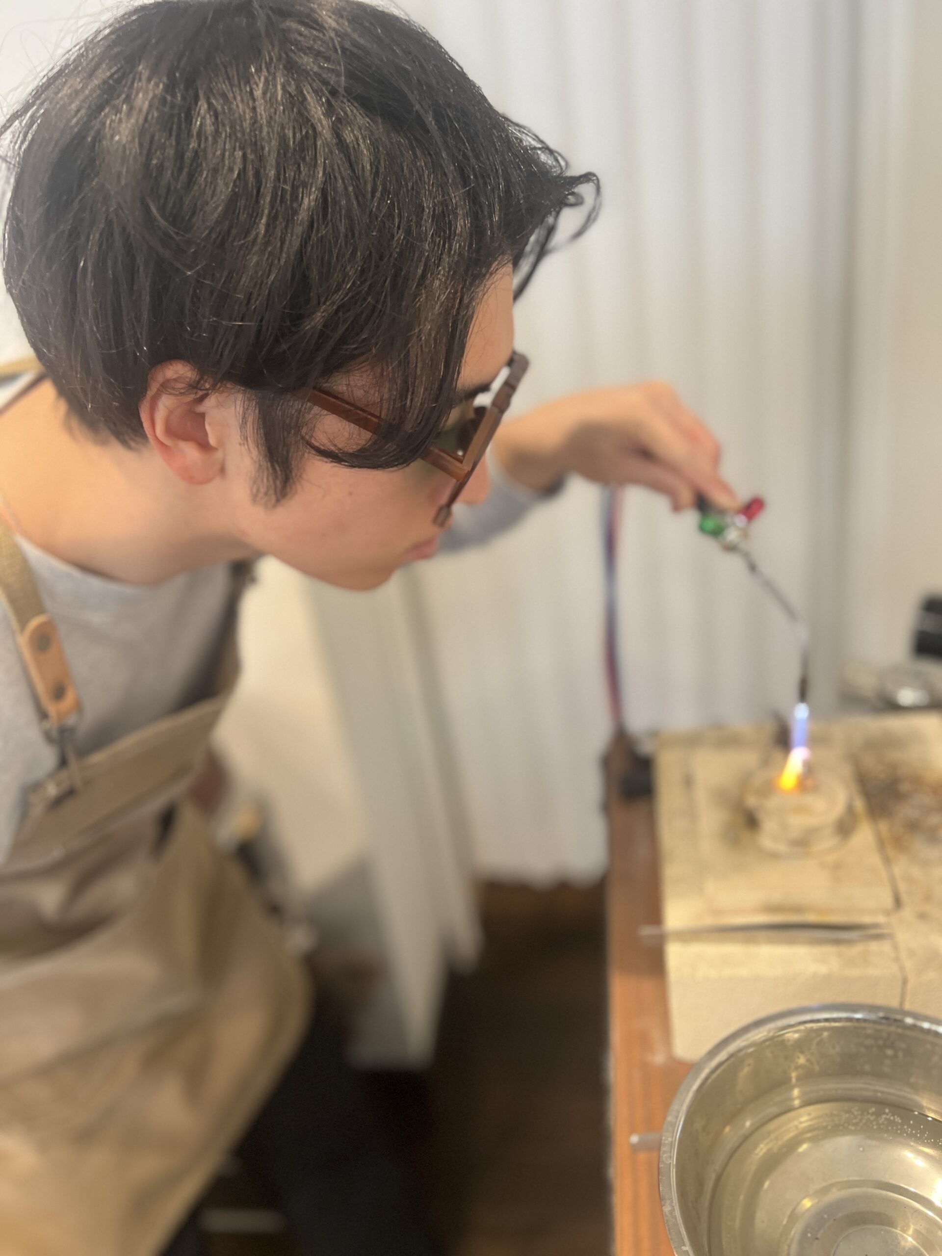 面白かったのは、自分のイメージと実際の感覚がまったく違ったことですね。最初は金属を叩く工程に興味があって、それを一番楽しみにしていたんです。でも、実際に作っていくと、なんと言っても最後の「磨き」の工程が印象的でした。細かい作業で難しかったんですが、磨けば磨くほど指輪が輝いていく。その変化を目の当たりにして、どんどん夢中になっていきました。気づいたら「もっと磨きたい」って思うほど、その工程に魅了されていましたね。