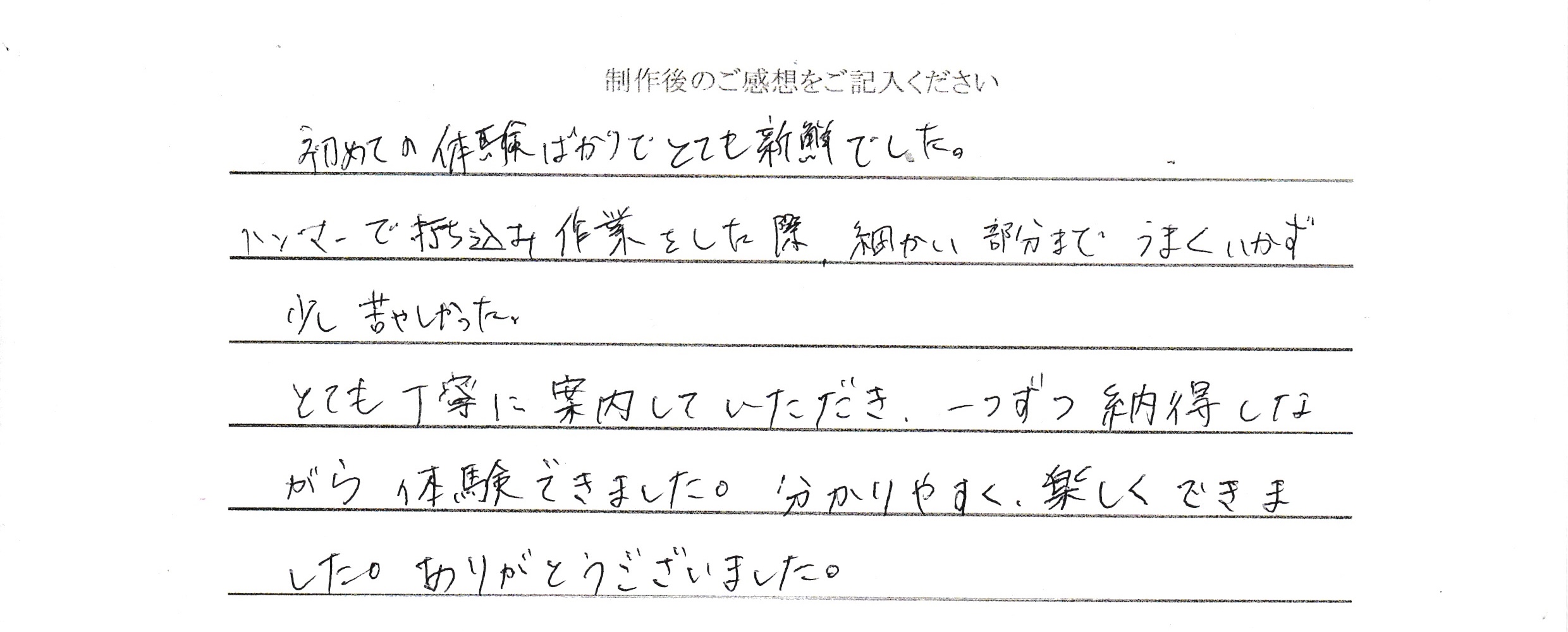 ハンマーで打ち込み作業をした際、細かい部分までうまくいかず少し悔しかった。