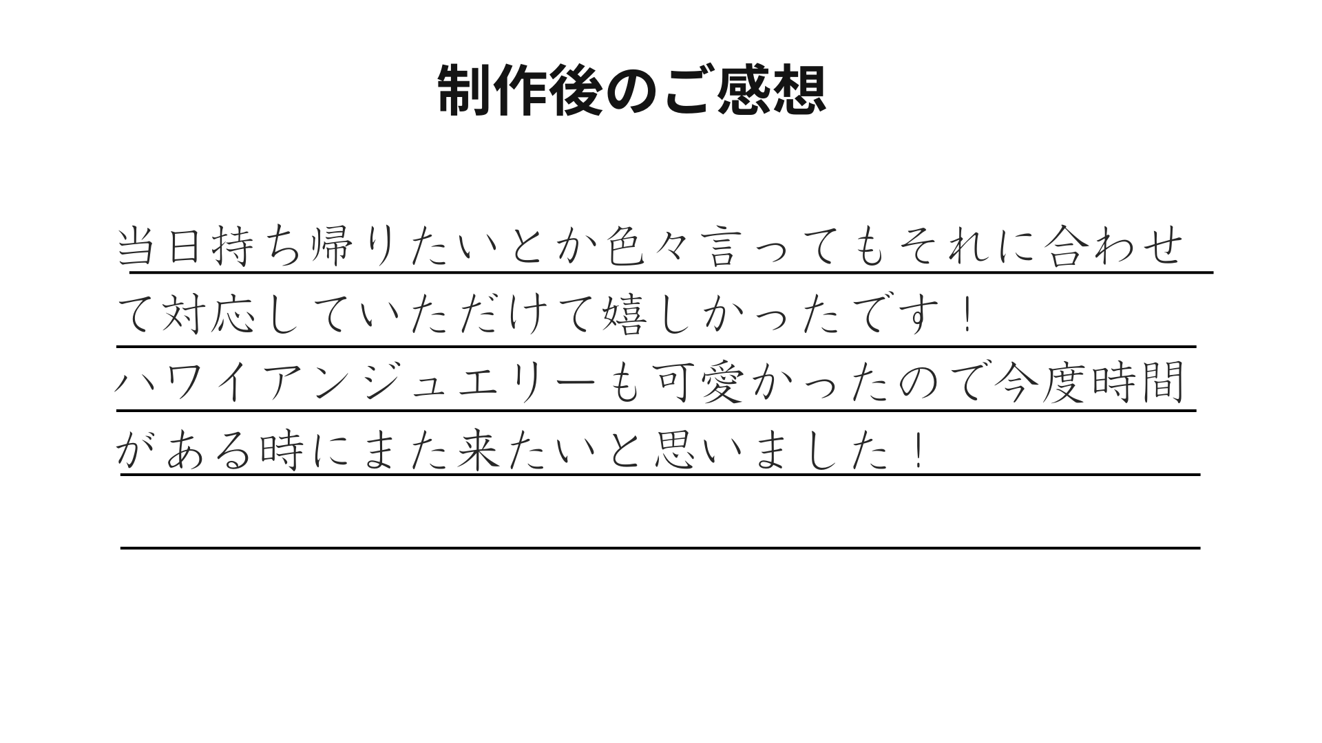 また、ハワイアンジュエリーについてもお褒めいただき、心より光栄に存じます。