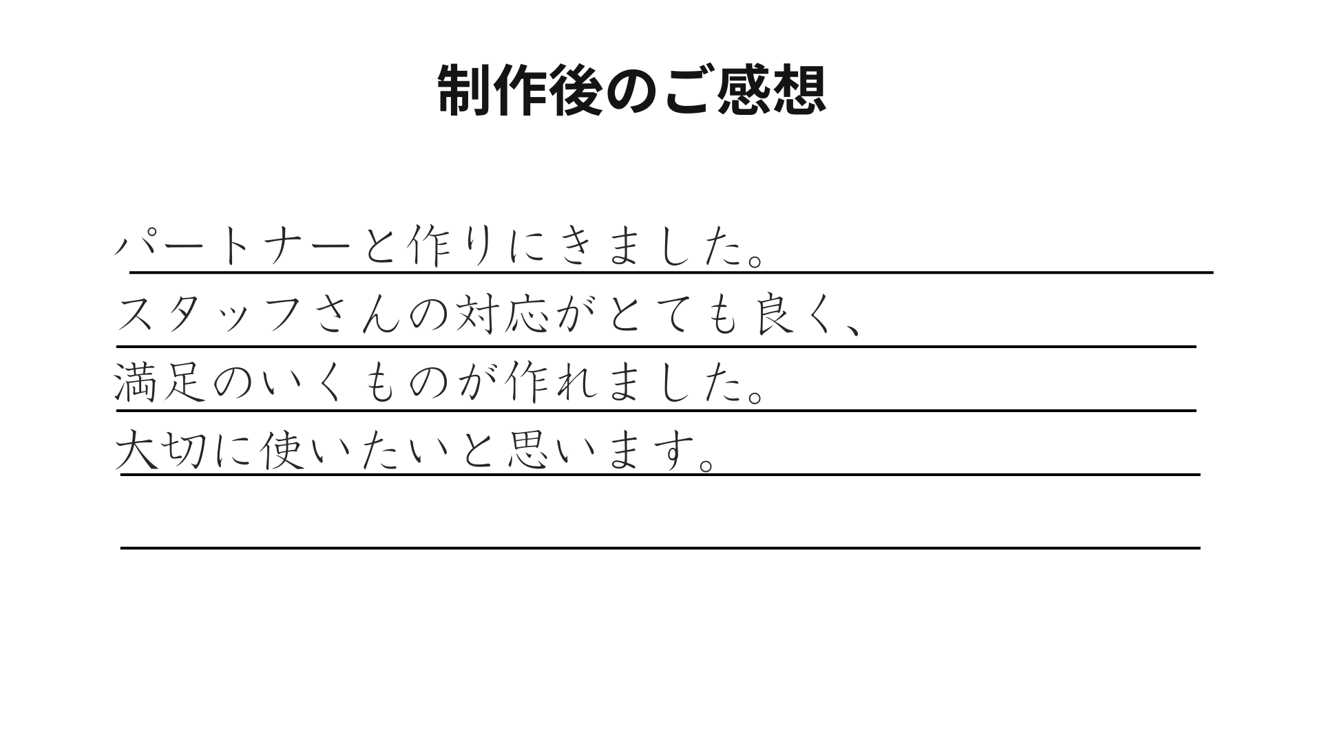 思い出が詰まった世界に一つだけのペアリング、是非大切になさってください。