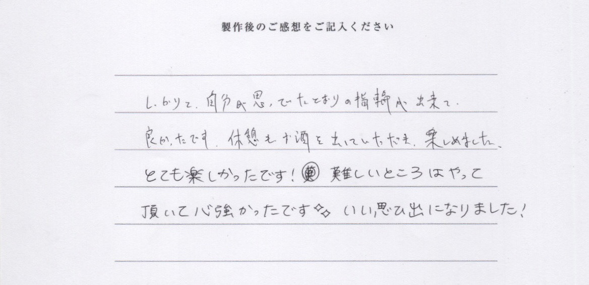 しっかりと自分が思っていた通りの指輪ができて良かったです。