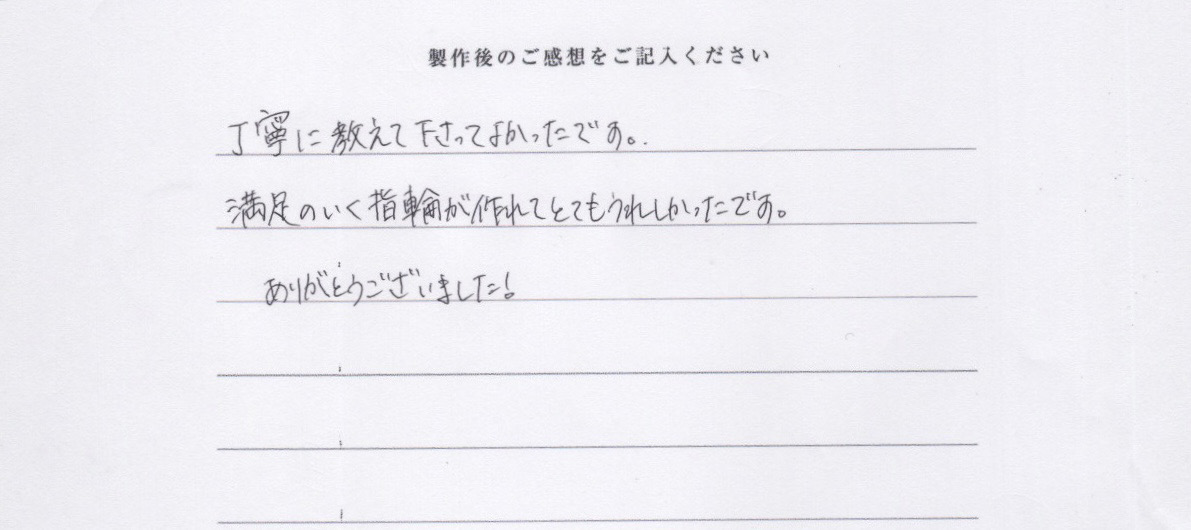 手作りペアリング|満足のいく指輪が作れてとても嬉しかったです。