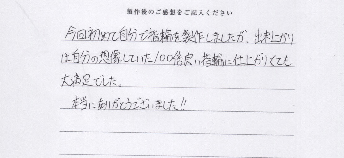 自分の想像していた 100倍良い指輪に仕上がり大満足でした。
