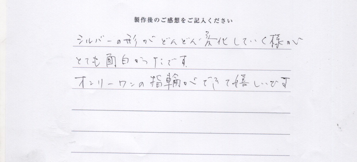 オンリーワンの指輪ができて嬉しいです。