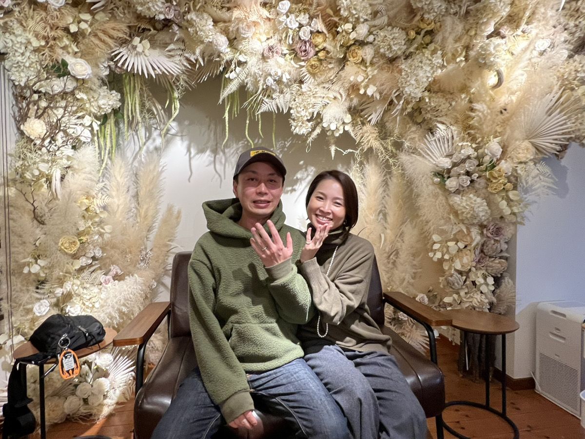 お二人にとてもお似合いのペアリングが完成しました。