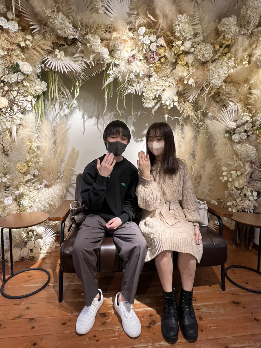 おそろいのチャーミングなペアリングがお二人にとてもお似合いでしたよ!