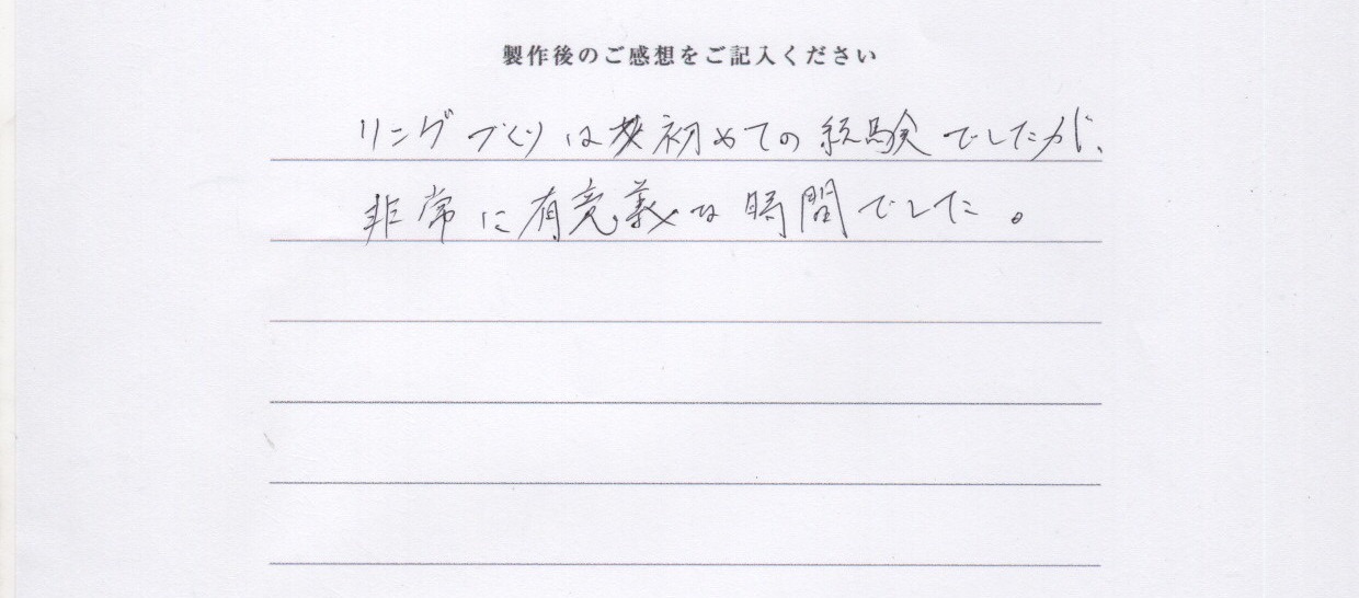 リング作りは初めての経験でしたが非常に有意義な時間でした。