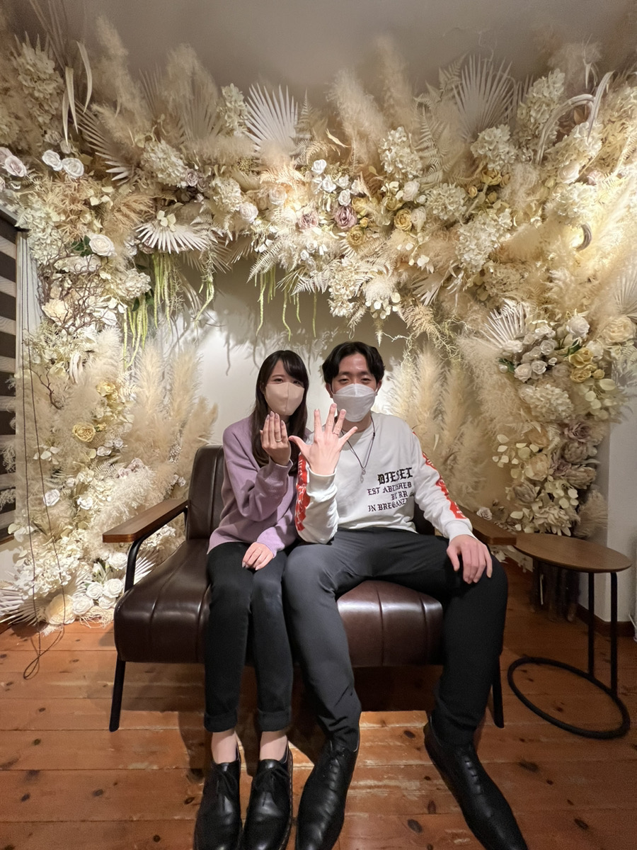男性の指にも細めのリングはオシャレな印象が出るので彼のはめた姿もとてもお似合いでした!