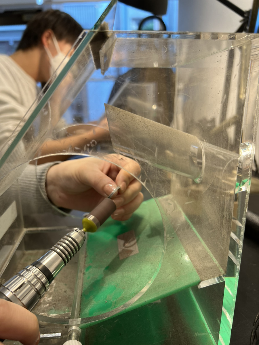 作業も一所懸命がんばってもらいお二人にお似合いの細め平打ちペアリングが完成しました!