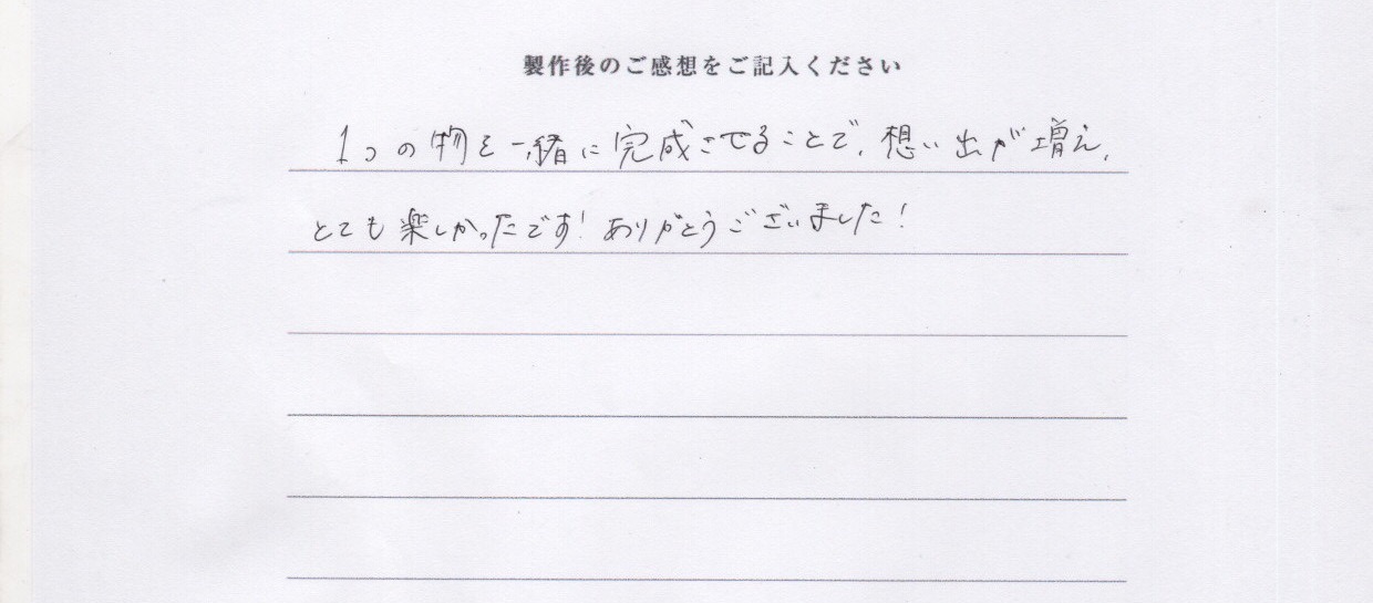 一つの物を一緒に完成させることで思い出が増えとても楽しかったです。ありがとうございました